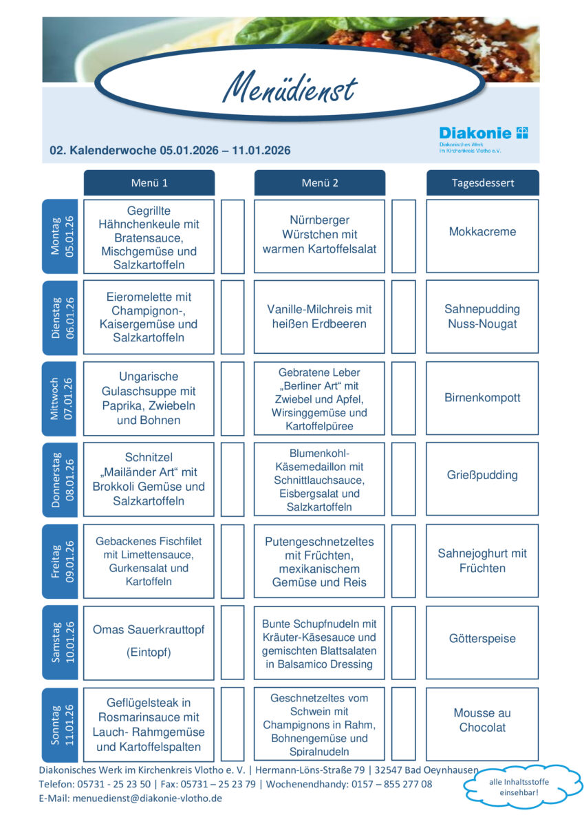 Menüplan Kalenderwoche 02, 05.01.-11.01.2026