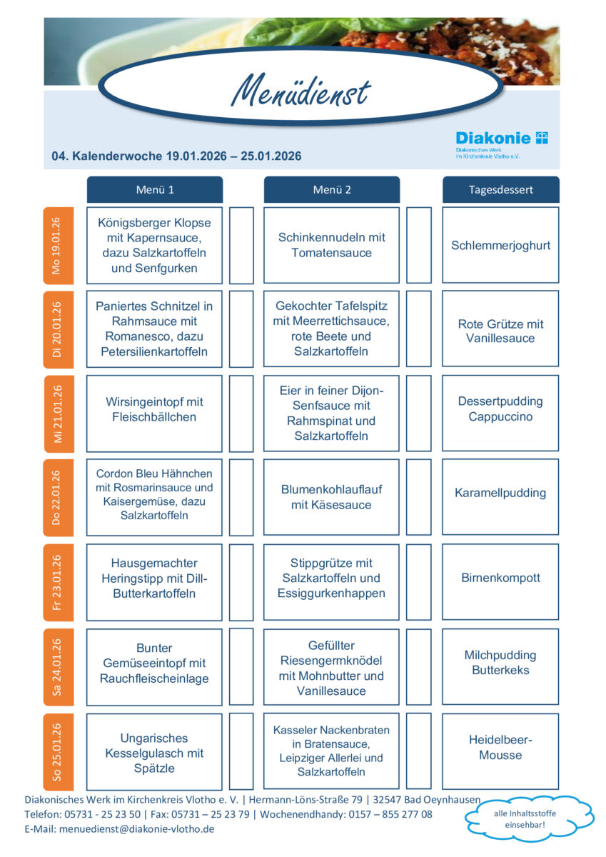 Menüplan Kalenderwoche 04, 19.01.-25.01.2026