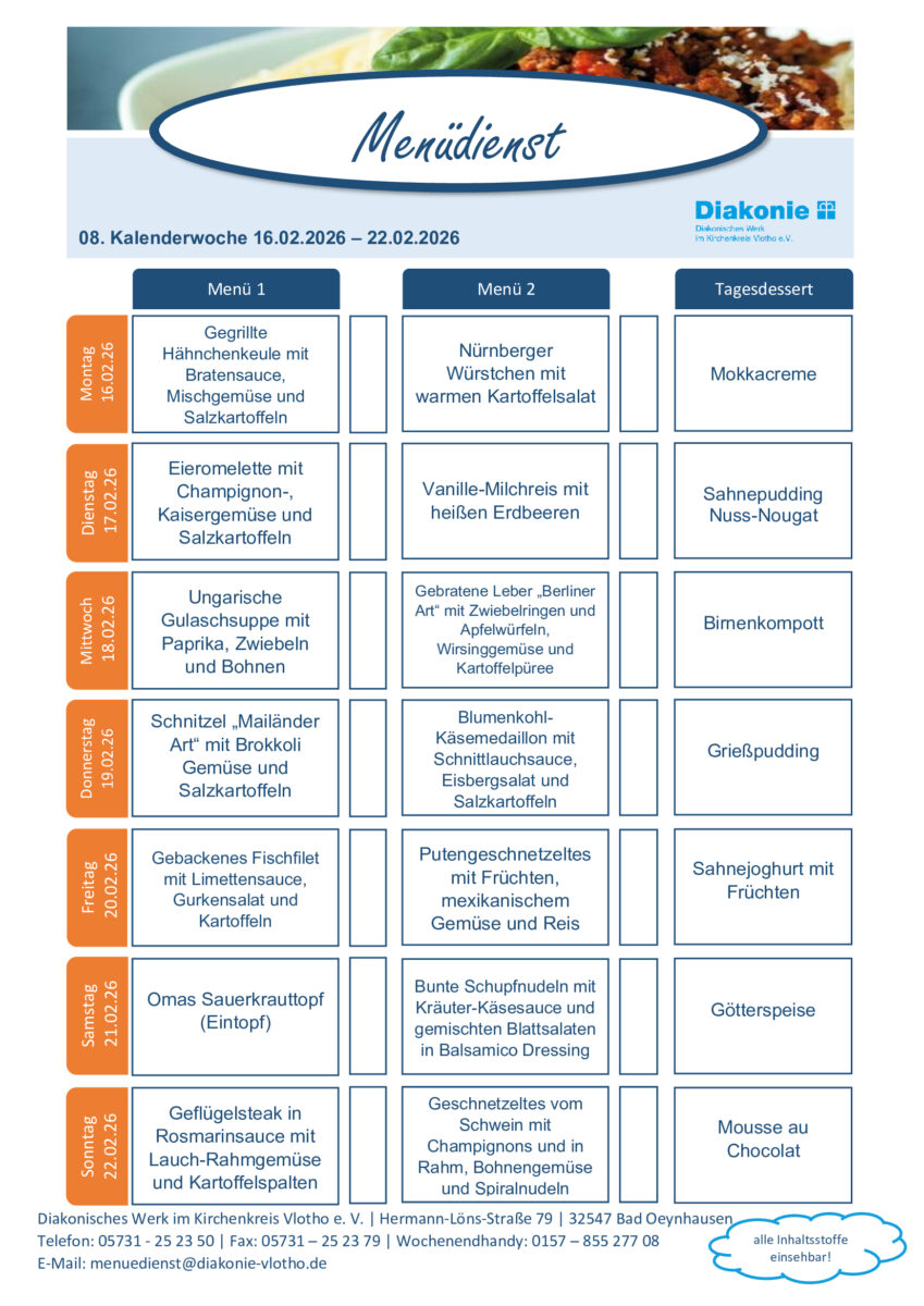 Menüplan Kalenderwoche 08, 16.02.-22.02.2026
