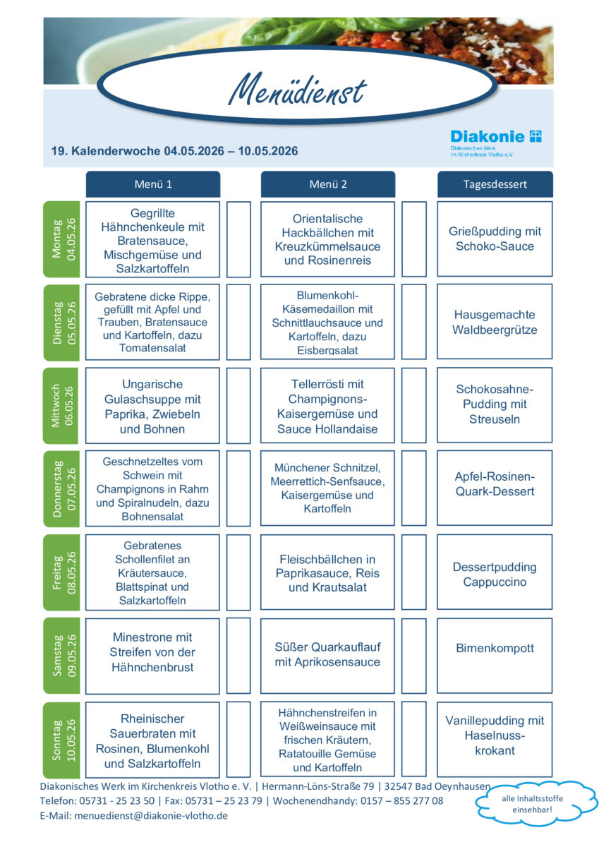 Menüplan Kalenderwoche 19, 04.05.-10.05.2026