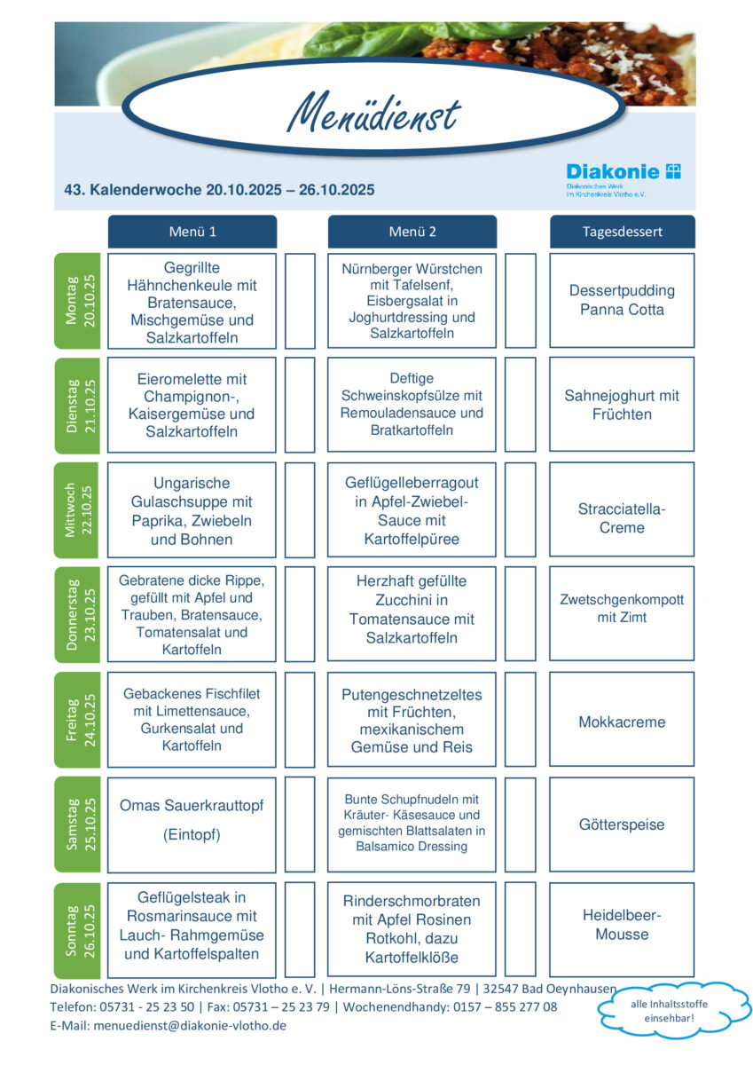 Menüplan Kalenderwoche 43, 20.10.-26.10.2025