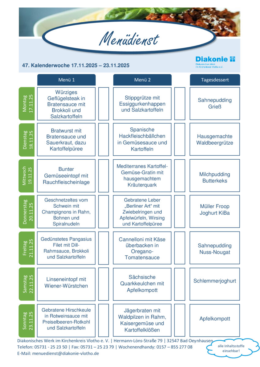 Menüplan Kalenderwoche 47, 17.11.-23.11.2025